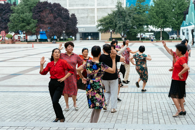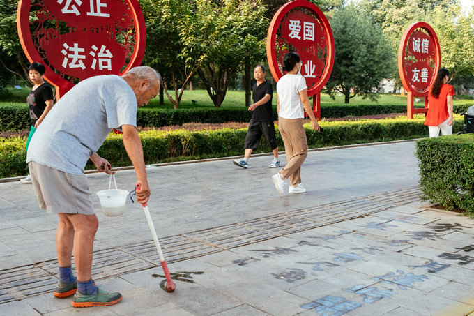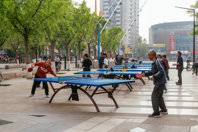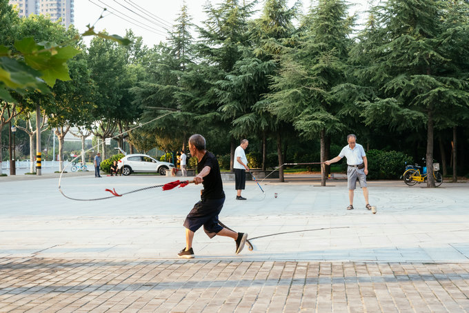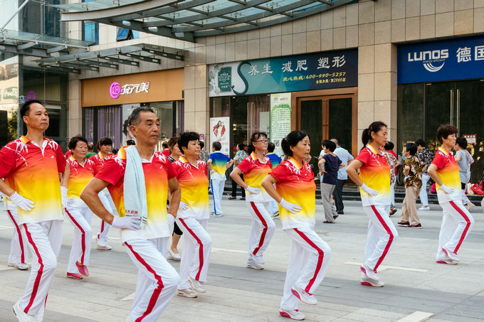 漫步街头,我拍摄了大量的街头市民生活和工作的摄影作品,其中就有这组晨练的中国人小题材。