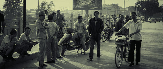 照系列《渭南表情符号》之一《桥畔打工人》