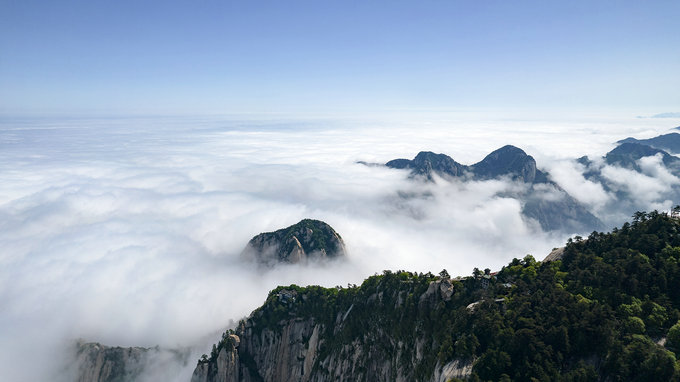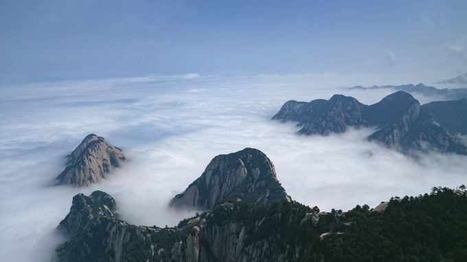华山南接秦岭,北瞰黄河,世称“奇险天下第一山”。北临坦荡的渭河平原和咆哮的黄河,南依秦岭,是秦岭支脉分水脊的北侧的一座花岗岩山。凭藉大自然风云变换的装扮,华山的千姿万态被有声有色的勾画出来,雨后的华山更是一幅绝美无比的仙境,山是不动的山,屹然岿立,云是飘忽的云,一起一收,静是静得兀然,动是动得突然,静和动之间,奇景幻影,层见叠出……