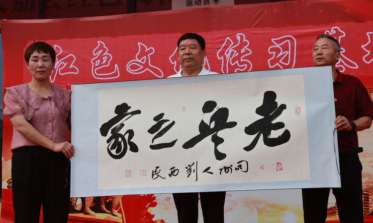 当天下午,近百名游客市民朋友、沙苑地区退伍老兵代表一起参加活动。书画家向红色文化传习基地敬赠了书画作品,演出在“老兵”们一曲“咱当兵的人”合唱中把晚会推向高潮。