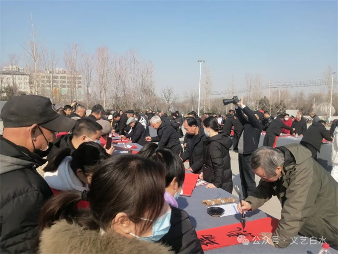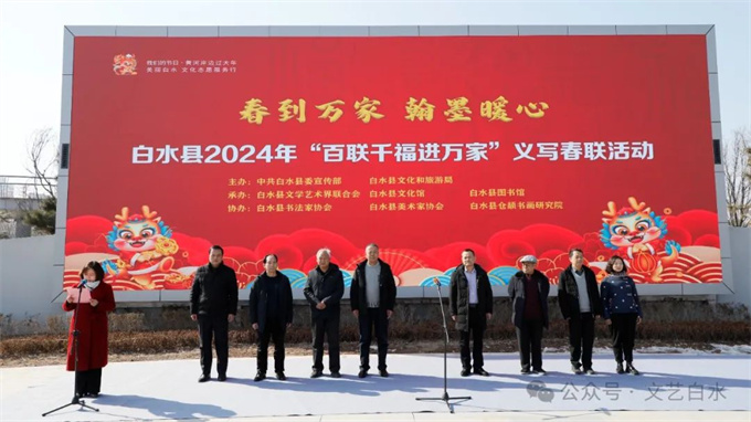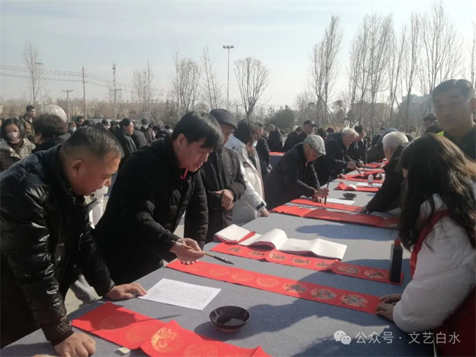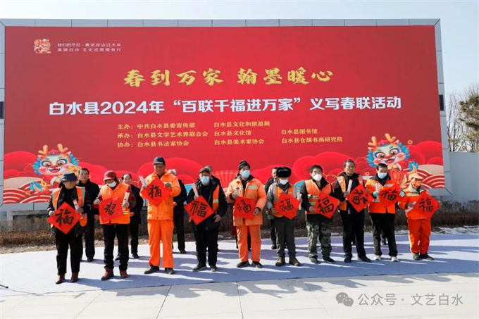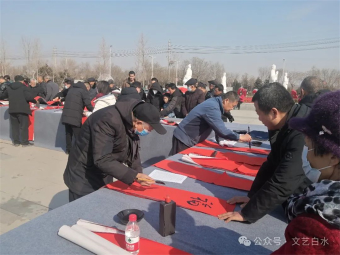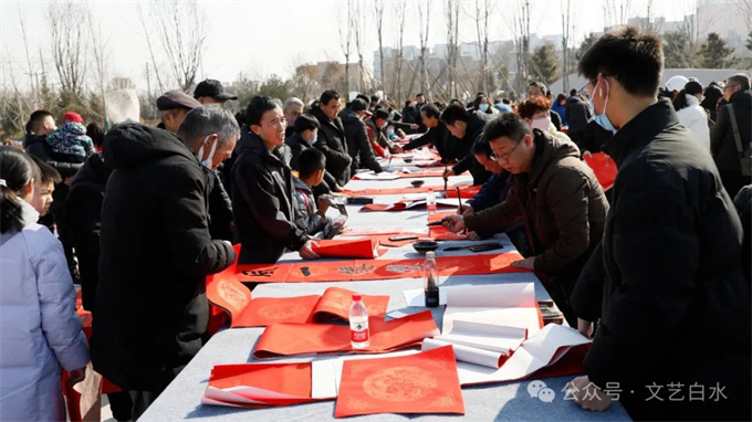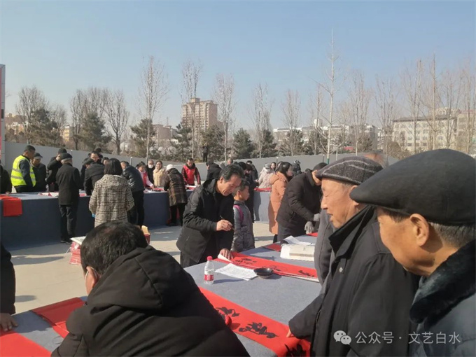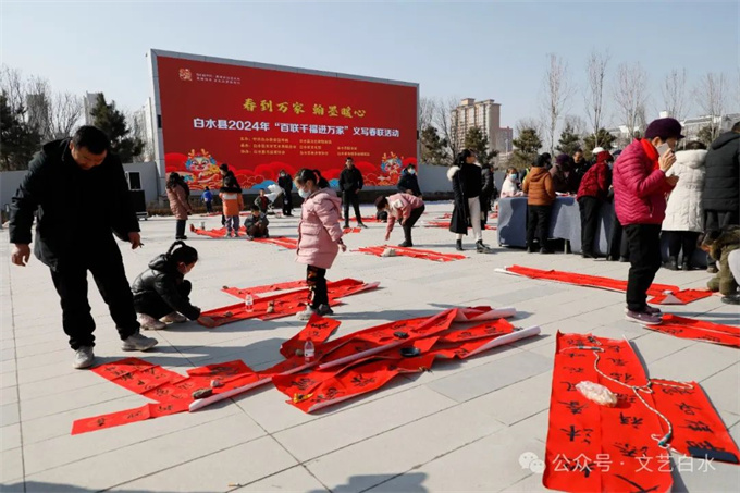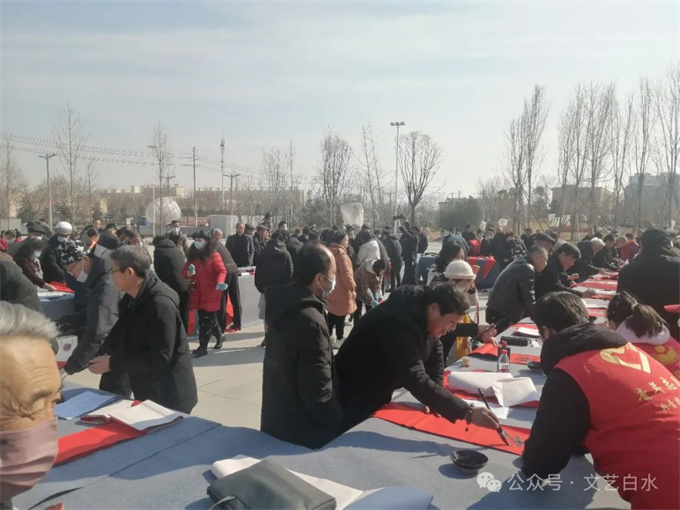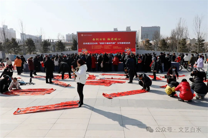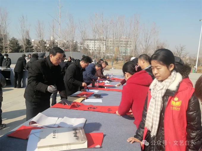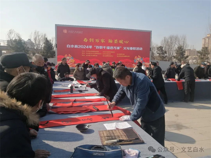 为深入学习贯彻习近平文化思想,丰富城乡群众春节文化生活,1月29日,由中共白水县委宣传部、县文化和旅游局主办,县文联、县文化馆、县图书馆承办,县书法家协会、县美术家协会、仓颉书画研究院协办的“白水县2024年“百联千福进万家”文化志愿者义写春联活动”在白水公园举行。