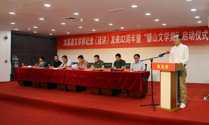 5月19日,大荔县文学界隆重纪念《延讲》发表82周年,由大荔籍作家、冰心散文奖获得者孙天才首倡并资助的“镰山文学奖”评选同步启动。渭南市作协副主席、秘书长刘平安,镰山书院院长孙天才,渭南市作协副主席严步青,大荔县委宣传部副部长、大荔文联主席王小民,以及全县文学界代表五十多人共同见证了“镰山文学奖”的设立。大荔文联副主席于晓主持仪式。