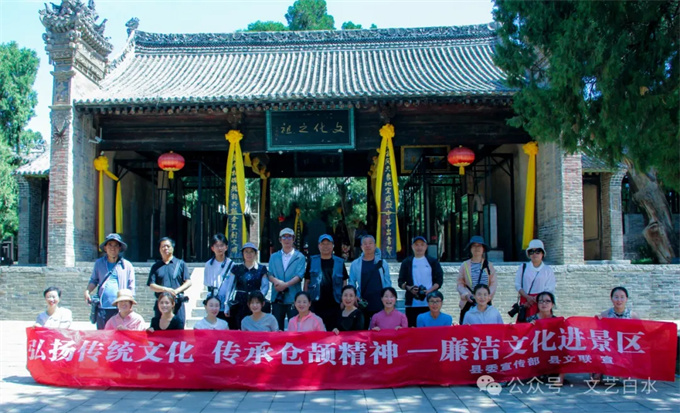 为深入学习贯彻习近平文化思想,喜迎中华人民共和国成立75周年,白水县文联组织所属文艺家协会在仓颉庙持续开展“弘扬传统文化 传承仓颉精神”系列文艺活动,各文艺家协会组织骨干文艺工作者奔赴”文字之祖“仓颉庙,开展了书法交流赠送、美术写生采风、摄影采风、清廉文化进景区等文化文艺活动,活动中,协会还与相关单位、学校和其它社会团体联合,举办形式多样的艺术展示传承活动。