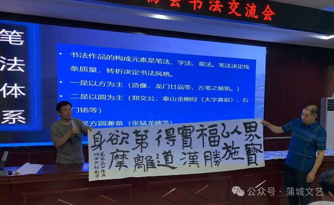 7月3日上午8时,蒲城县书协会员及广大书法爱好者齐聚于蒲城县职教中心,开展蒲城书协书法交流活动。李晓英主席说明了此次开展活动的缘由及意图,旨在通过讲座、交流中发现问题、解决问题、互相学习、取长补短,努力打造精品佳作,提高蒲城书协会员的整体水平。