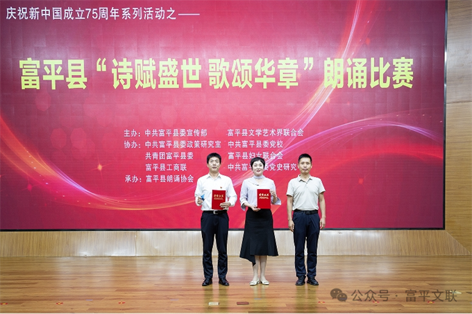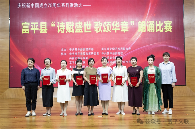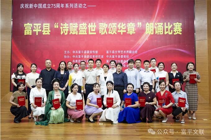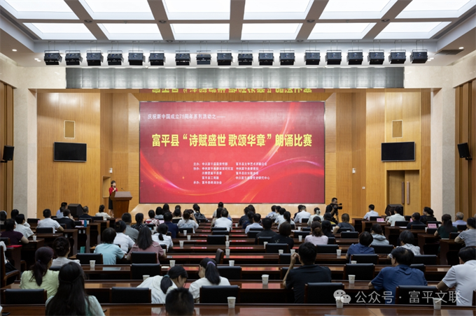 7月19日晚,由富平县委宣传部、富平县文学艺术界联合会主办,中共富平县委政策研究室、中共富平县委党校、共青团富平县委、富平县妇女联合会、富平县工商联、中共富平县委党史研究中心协办,富平县朗诵协会承办的庆祝新中国成立75周年系列活动之“诗赋盛世 歌颂华章”朗诵比赛(决赛)在富平县干部学院大礼堂举行。