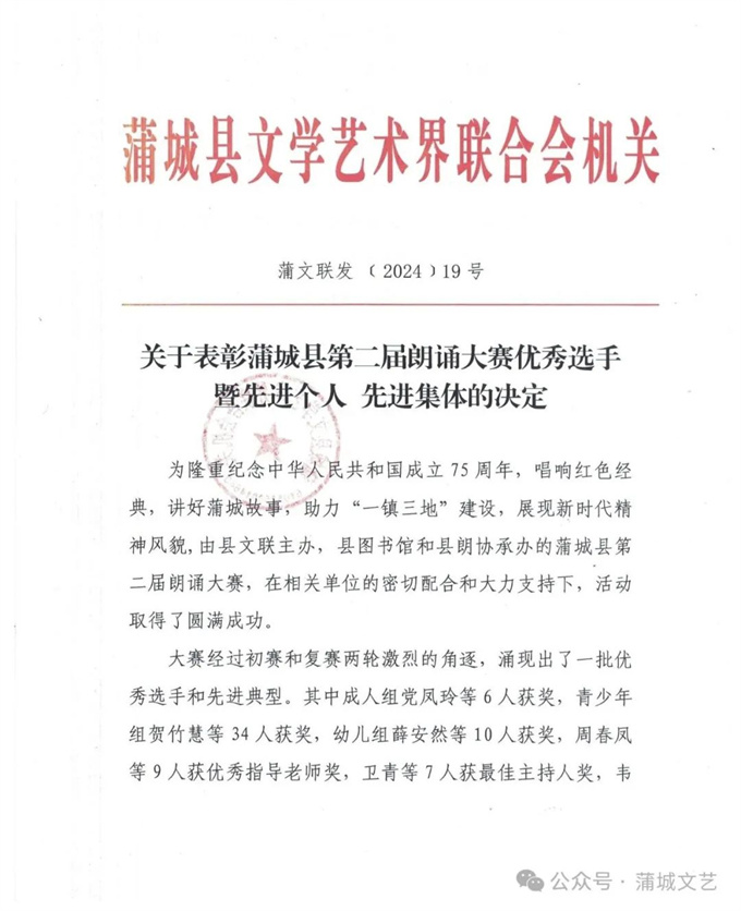 关于表彰蒲城县第二届朗诵大赛优秀选手暨先进个人先进集体的决定