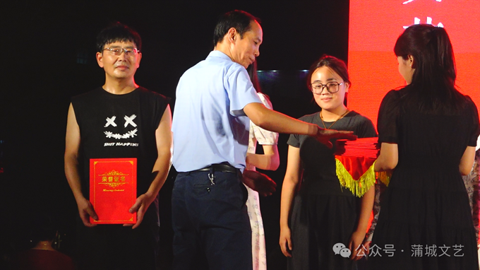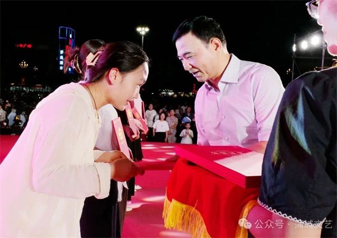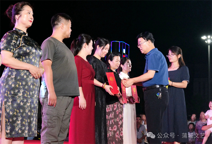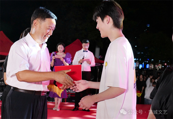 会上,蒲城县文联主席任小岗宣读表彰决定,幼儿组、青少年组、成人组的众多优秀选手以及优秀组织奖、公益支持单位奖、特殊贡献奖、优秀指导老师奖、最佳主持人奖、优秀文艺志愿者奖等逐一揭晓。渭南市文联党组书记李军强、渭南市文联副主席葛长明、蒲城县政协副主席陶小杰、蒲城县武装部政委马俊睿、蒲城县总工会党组书记、副主席王宏庆,以及蒲城县延安精神研究会会长王树勋、原县武装部部长韩建民、文化艺术报渭南记者站站长高盼成、渭南日报全媒体总监张伯阳、蒲城县委宣传部副部长郭辉、蒲城县新时代文明实践中心副主任杨建红、蒲城县图书馆馆长张金花、蒲城县教育局党办主任简文辉等领导嘉宾现场为选手和相关单位和个人颁奖。