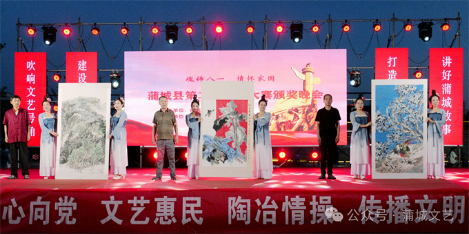 为隆重纪念中国人民解放军建军97周年,唱响红色经典、讲好蒲城故事,8月1日,“魂铸八一·情怀家国”——蒲城县第二届朗诵大赛颁奖晚会在县城中心文化广场成功举办。文联所属各协会、文联文艺顾问、支持文艺事业的单位和嘉宾,以及现场观众一千余人参加颁奖晚会。此次活动由蒲城县文学艺术界联合会主办,蒲城县图书馆和蒲城县朗诵协会承办。