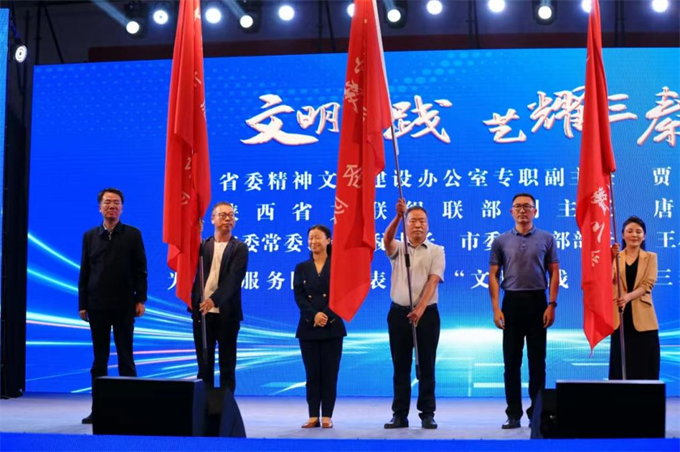 为韩城市、合阳县、富平县授予“文明实践·艺耀三秦”志愿服务旗帜