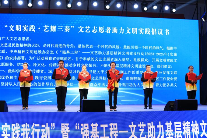 文艺志愿者代表宣读“文明实践·艺耀三秦”文艺志愿者助力文明实践倡议书
