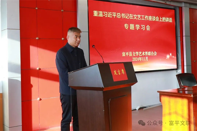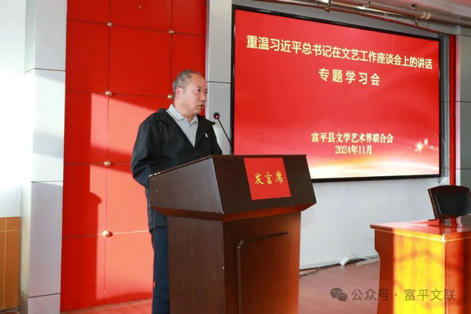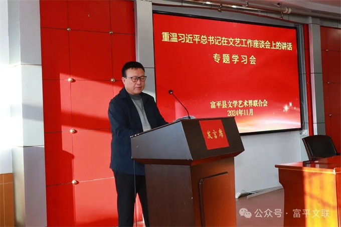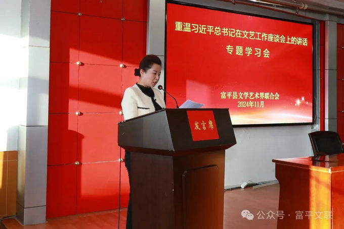 11月4日,富平县文联组织召开了“重温习近平总书记在文艺工作座谈会上的讲话”专题学习会。富平县委宣传部副部长,文联党组书记、主席樊宁,副主席陈艳妮,各文艺家协会主席团成员、会员代表及文联机关干部80余人参加。会议由陈艳妮主持。