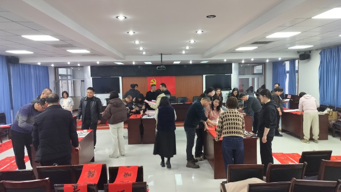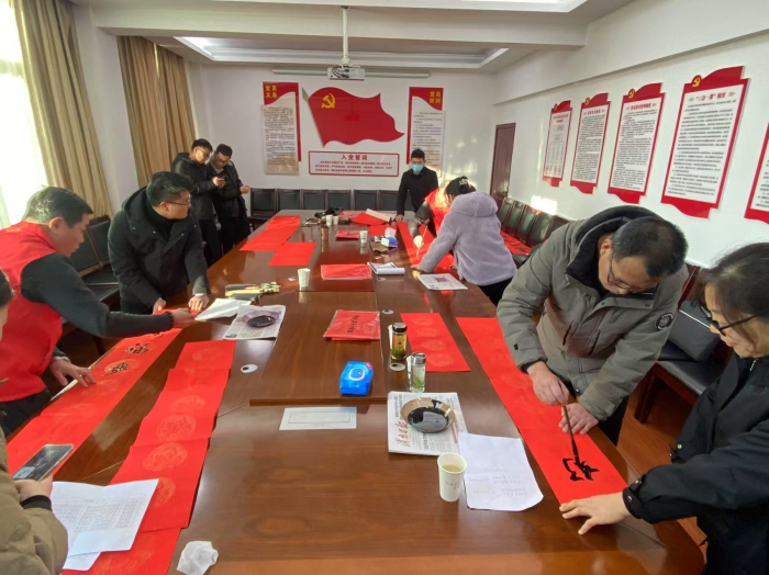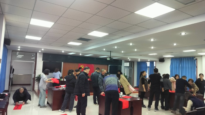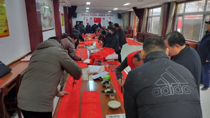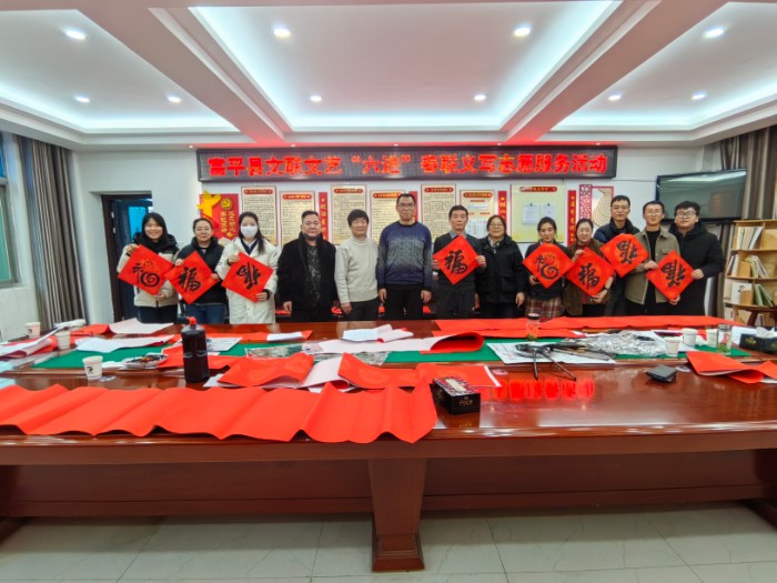 义写春联送祝福志愿服务活动自启动以来,富平县书协、美协10余位书画家组成文艺志愿服务小分队,不畏严寒,不辞劳苦,历时20余天,分别走进老庙镇,薛镇,齐村镇,卫健局,自然资源局,中冶陕压,陕焦化工等20余家村镇、社区、企事业单位,为人民群众义写春联送“福”字万余副。用春联为广大干部群众贺岁,把“福”送进千家万户,让广大人民群众真切感受到浓厚的年味,不断提升富平人民的幸福感、获得感和荣耀感。迎着新春的气息,活动现场墨香四溢,佳作频出。人们脸上洋溢着开心、喜悦的笑容,浓浓的节日气氛充盈着每一个角落。书画家们铺纸运笔,挥毫泼墨,激情书写,将浓浓的年味赋予一笔一画之间。他们在墨香中写下苍劲有力的字体,在字里行间注入对新年的期待与愿景。“平安喜乐皆如意,瑞气盈门福自来”“龙腾霄汉开好运,鹊立枝头报好音”“门迎富贵平安福,家庆祥和康乐年”……一副副散发着淡淡墨香、寓意吉祥的春联,一张张喜气洋洋、饱含神韵的“福”字,蕴藏着浓浓的情谊与祝福,带着辞旧迎新的美好节日憧憬,送到人民群众和干部职工手中。希望大家过一个文明、祥和、幸福的新年。活动现场的同志一边挑选自己心仪的春联,一边感叹手写的春联、“福”字最有年味!