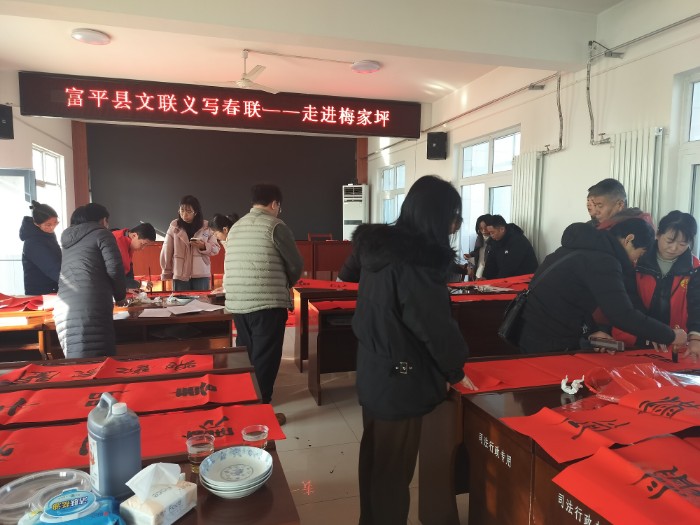 翰墨浓情歌盛世,义写春联送祝福。在2025年春节来临之际,为弘扬中华优秀传统文化,营造喜庆祥和的春节氛围,丰富人民群众文化生活,渭南市富平县文联开展了“新春送祝福 翰墨润民心——富平县文联文艺‘六进’义写春联志愿服务”活动。