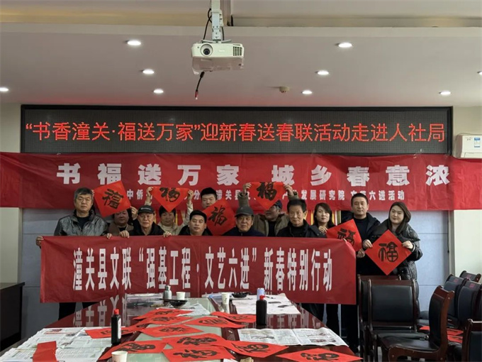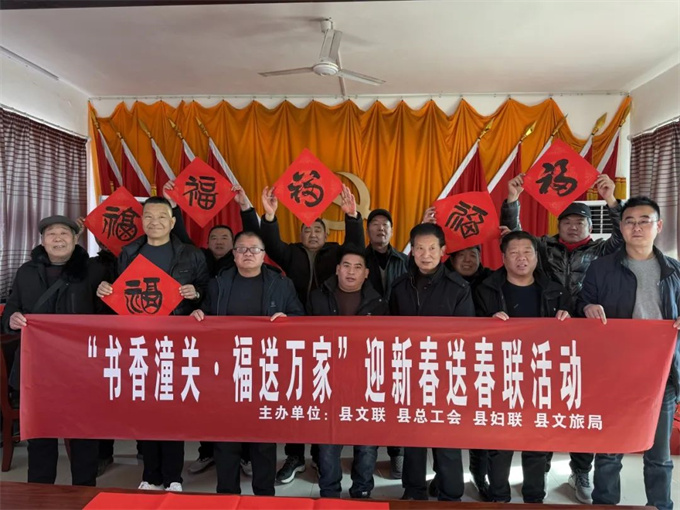 在新春佳节来临之际,为弘扬中华民族优秀传统文化,丰富群众精神文化生活,营造欢乐祥和的节日氛围,潼关县文联联合县总工会、县妇联、县文化和旅游局、县文化馆共同举办“书香潼关•福送万家”迎新春送春联活动。此次活动以笔墨传情,为全县人民送上最真挚的新春祝福。