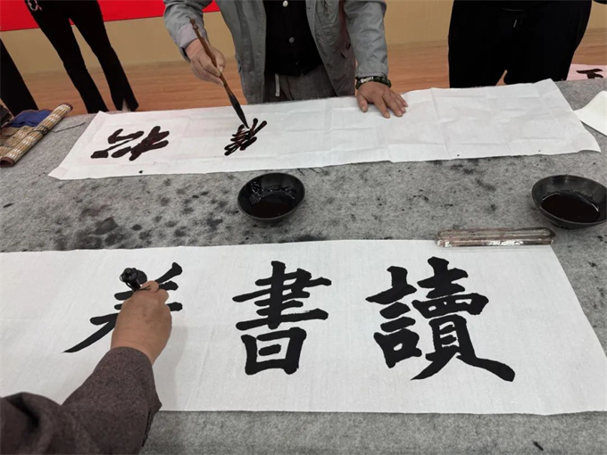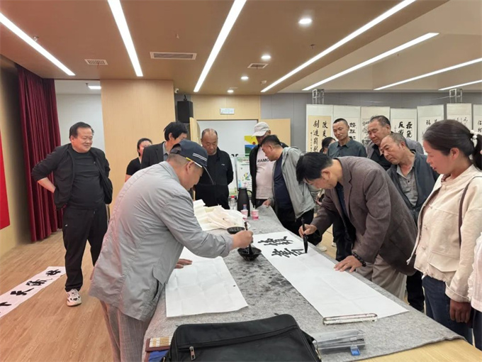 活动现场,书法老师们挥毫泼墨,即兴创作书法作品,吸引众人驻足欣赏,现场洋溢着浓厚的文化氛围与对优良家风的赞颂之情 。