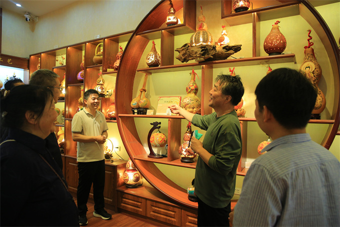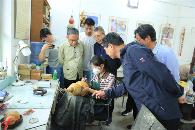 在合阳洽川葫芦种植专业合作社,市民协理事宋鹏杰积极探索葫芦特色种植产业,通过烙烫、雕刻等工艺推出百余种样式精美的葫芦工艺品,同时还带动周边众多农户就业,已然成为文艺产业赋能乡村振兴的典型范例。非遗传承人赵焕能采用集剪纸、面花、传统美食为一体的发展模式,开发小麦系列食品,还成立粮食种植家庭农场保障原材料供应,注册多个商标,让地方传统食品焕发生机。大家通过参观公司的生产流程和产品展示,深刻体会到民俗文化在现代社会的创新传承。