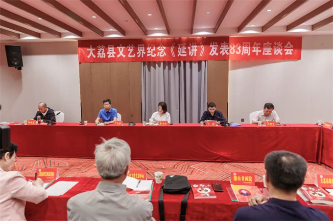 座谈会上,组织全体与会人员重温了《延讲》精神;各文艺协会负责人围绕《延讲》精神谈心得,谋发展。大荔籍著名作家、陕西省作协会员、渭南市作协副主席严步青,就作家“写什么?”“为谁写?”“如何接地气?”等问题做了深入探讨,提出了新时期大荔作家队伍在创作理念上应遵循的一些新问题和新观点。县委宣传部退休干部、资深媒体人,省作协会员武德平,做了题为《以文化人担当使命 用心用情创新创作 把准时代脉搏奋力构筑大荔文艺事业新高峰》的发言,对努力开创大荔县文联工作新局面,提出了许多建设性意见和建议。国家级非物质遗产项目同州梆子代表性传承人,同州梆子作曲家何满堂,围绕“文艺为人民服务”的根本宗旨,就大荔非遗传承、精品文艺创作与演出等事宜,谈了不少新观点,提出了一些很好的意见和建议。