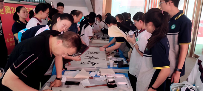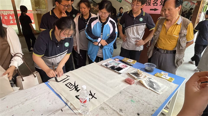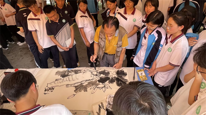 2025年5月21日,下午4点时许,烈日似火,气温高大40度.华阴市美术协会书画家不惧高温天气走进华阴市岳庙中学,与师生们进行“强基工程——文艺助力基层精神文明建设在行动,我们中国梦——文艺进万家,六进志愿服务活动”,受到岳庙中学师生的热烈欢迎和点赞。