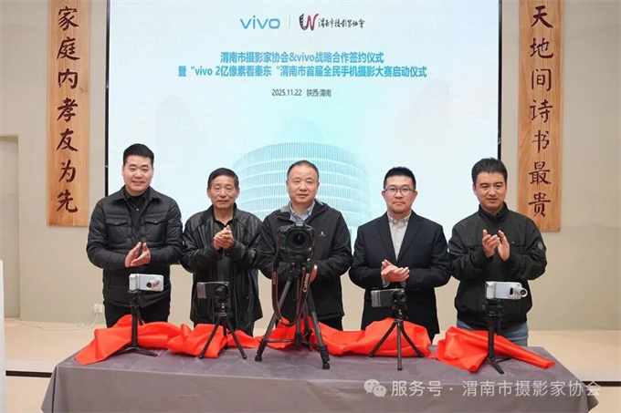 活动现场亮点十足:渭南市摄影家协会与vivo的战略合作签约,为跨界赋能渭南摄影事业揭开新篇章!双方将以摄影为桥,通过举办高质量采风和展览、开展专业摄影培训,让更多市民爱上摄影、学会摄影,用手机定格美好生活、用影像讲好渭南故事,既助力本土文化传播,也推动手机摄影艺术普及,共同书写渭南摄影发展新篇。