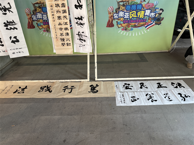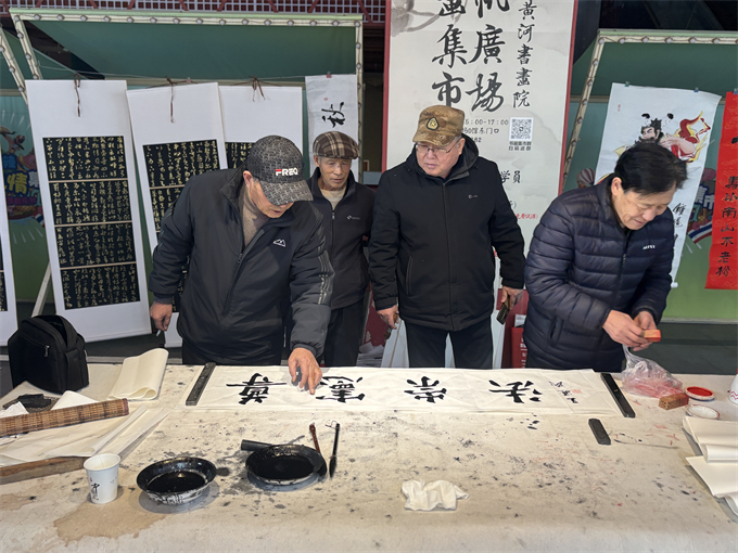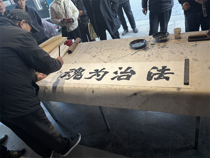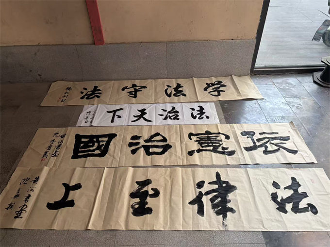 活动现场,黄河书画院的老师们现场提笔创作。法治名言警句随着笔墨流转跃然纸上,一幅幅笔力沉稳的书法作品,既透着传统书画的韵味,又饱含法治宣传的深意。这样的普法形式格外吸睛,不少路过的群众纷纷停下脚步围观,一边欣赏作品,一边和身边人交流,现场氛围热烈又融洽。