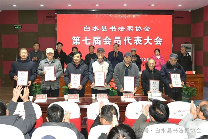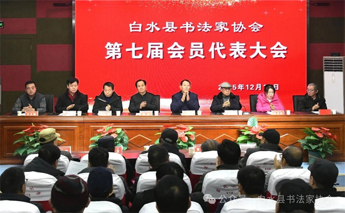 2025年12月14日上午,白水县书法家协会第七届会员代表大会在白水县东风小学童梦楼3D会议室圆满召开。