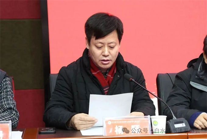 白水县书法家协会副主席郑鸿钧宣读白水县书法家协会《章程》(草案)