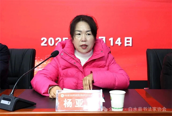 白水县社会组织党群服务中心支部书记杨亚亚宣读关于同意白水县书法家协会换届的批复