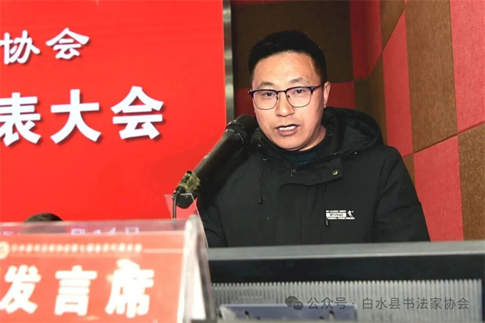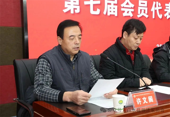 白水县书法家协会主席许文阁作第六届理事会工作报告