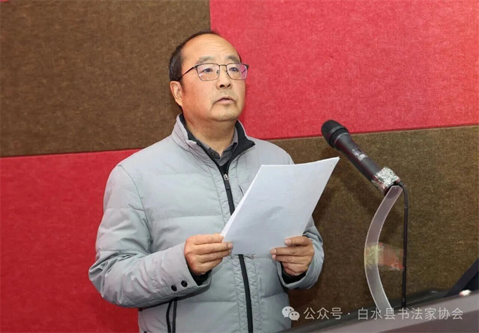 白水县书法家协会第七届新当选主席许文阁表态发言