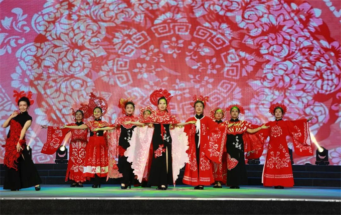 舞台之外,线下学员作品展示同样精彩纷呈,数百幅学员书画、剪纸、摄影作品有序陈列,墨香袅袅、笔韵流转、光影定格,构成一道独具渭南特色的文化风景线。楷书端庄大气,行书飘逸洒脱,国画作品尽显渭南山水的灵秀与人文的厚重;剪纸展区内,非遗技艺与生活场景相映成趣,更有学员身着非遗剪纸服饰登上T台,让古老技艺在时尚舞台上焕发新生;摄影作品中,城乡变迁的日新月异、百姓生活的幸福欢颜定格在镜头前。每一件作品都扎根生活、源于热爱,既是群众对美的感知,更是对生活的礼赞、对家乡的热爱。