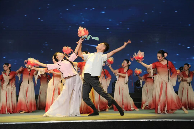 舞台之上,17个全新创排的综艺节目悉数登场,奏响全民美育的动人交响。节目涵盖秦腔、合唱、舞蹈、器乐合奏、旗袍走秀、古琴茶艺、朗诵等多种艺术形式。所有参演者均为公益艺术培训的群众学员,他们没有极致的技巧雕琢,却以最诚挚的热情绽放自我。从古典舞《流光》的典雅浪漫,到电子琴与电吹管合奏《梁祝》的经典新编;从爵士舞《爵燃炸裂》的活力四射,到秦腔《拜小年》的高亢激昂;从群舞《春韵河灯情悠悠》到大合唱《春风十万里》,每一个动作、每一句唱腔、每一个笑容,都诉说着艺术赋予普通人的自信与力量,完美诠释了“全民学艺 人人有艺”的丰硕成果。