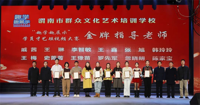 展演现场为第三届“趣学趣展示”学员才艺短视频大赛“金牌指导老师”戚茜等12位获奖老师和刘小红等15位2025年度“优秀教师”颁奖。