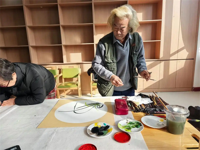 魏战民老师则以清新雅致的画风,带来了别样的艺术享受。他笔下的《幽兰清韵图》,月季娇艳欲滴,兰花清雅脱俗,两者相映成趣,既展现了自然的生机勃勃,又透露出高洁淡雅的精神品格。这幅作品犹如一缕清风,为敬老院增添了宁静祥和的文化气息,也让老人们感受到艺术的静谧与美好。