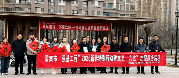 新春将至,年味渐浓。2月5日,为深化“强基工程”文艺惠民实效,传承中华优秀传统文化,渭南市作家协会组织文艺志愿者与人文书画院书法老师,走进高新社区开展“迎新春·送福写春联”文化志愿服务活动,把墨香年味与新春祝福送到居民家门口。