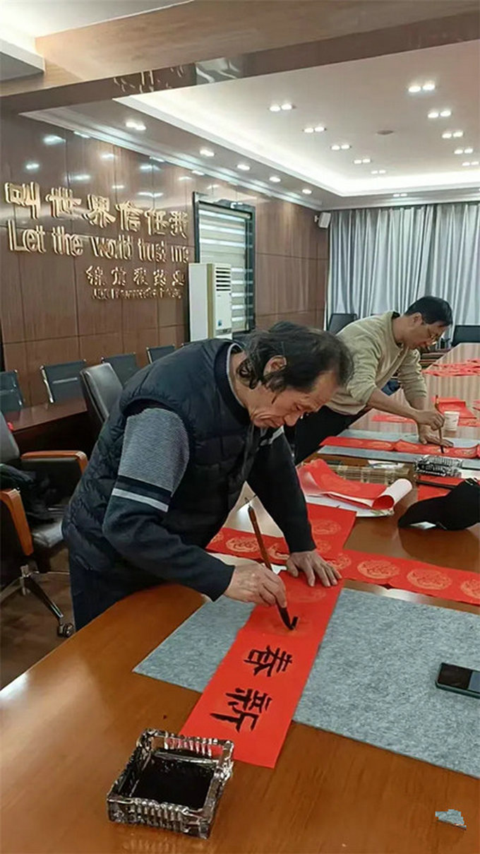 会后,王兴儒主席率部分参会艺术家前往驻景区民营企业——锦前程药业有限公司,开展“迎新春 送祝福”义写春联公益活动。艺术家们挥毫泼墨,将诚挚的祝福倾注于笔端,为坚守岗位的一线职工书写、赠送“福”字与春联近200幅,营造了欢乐祥和的节日氛围,展现了艺术服务社会的担当。