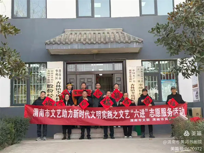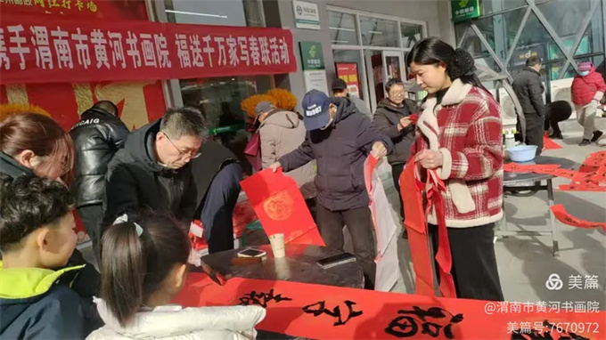 马年春节将至,渭南市黄河书画院积极响应渭南市文联“文艺六进”志愿服务号召,组织院内10余名书画家深入基层一线,开展公益写春联、送福字文化惠民活动,以笔墨传递温情,以祝福浸润民心,让浓浓年味洒满华州大地。