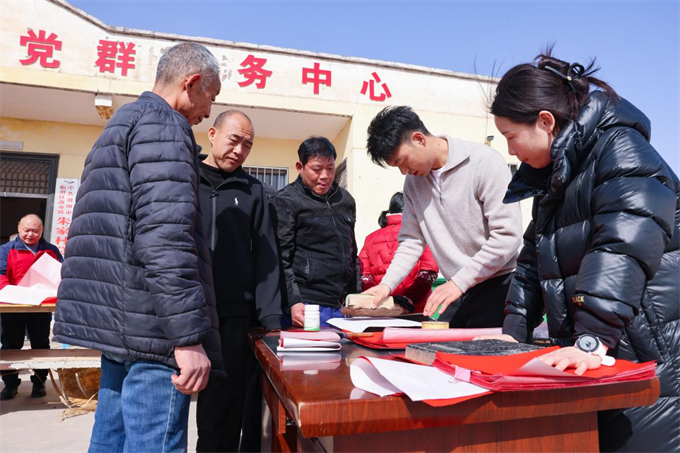 自今年新春惠民活动开展以来,老师们已连续二十余天奔走在服务一线,真心实意为群众服务,用一幅幅规格齐全、寓意吉祥的春联,把最真挚的新春祝福送到千家万户,送到百姓心坎上。