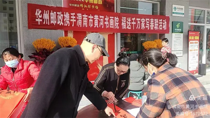 2月9日至12日为期四天,书画院老师们先后走进华州区邮政局两个服务网点和华州区杏林镇李坡村,为群众现场书写春联。根据群众需求与场地分布,大家灵活调配创作力量:在邮政局两个点位分为两组同步书写,前往李坡村时增调骨干师资,分成三组同步创作,每组安排4至5位老师执笔,整体参与力量增至10—14人,最大限度满足群众需求。活动现场人气爆棚、热闹非凡,四面八方闻讯而来的群众络绎不绝,现场人头攒动、秩序井然,男女老少手持红纸、有序排队,期盼着领取一幅满载祝福与墨香的新春对联,处处洋溢着喜庆热烈、暖意融融的节日氛围。