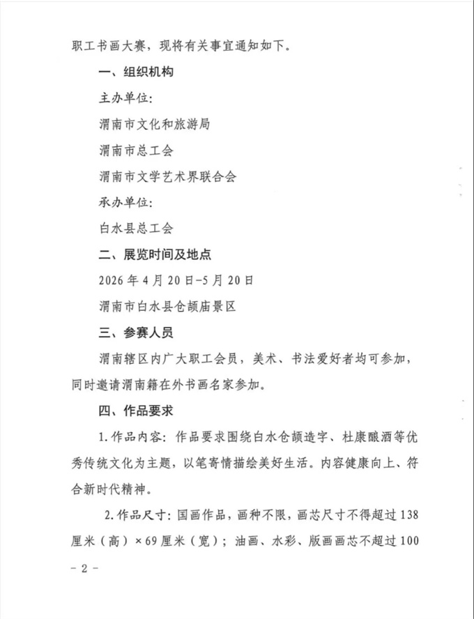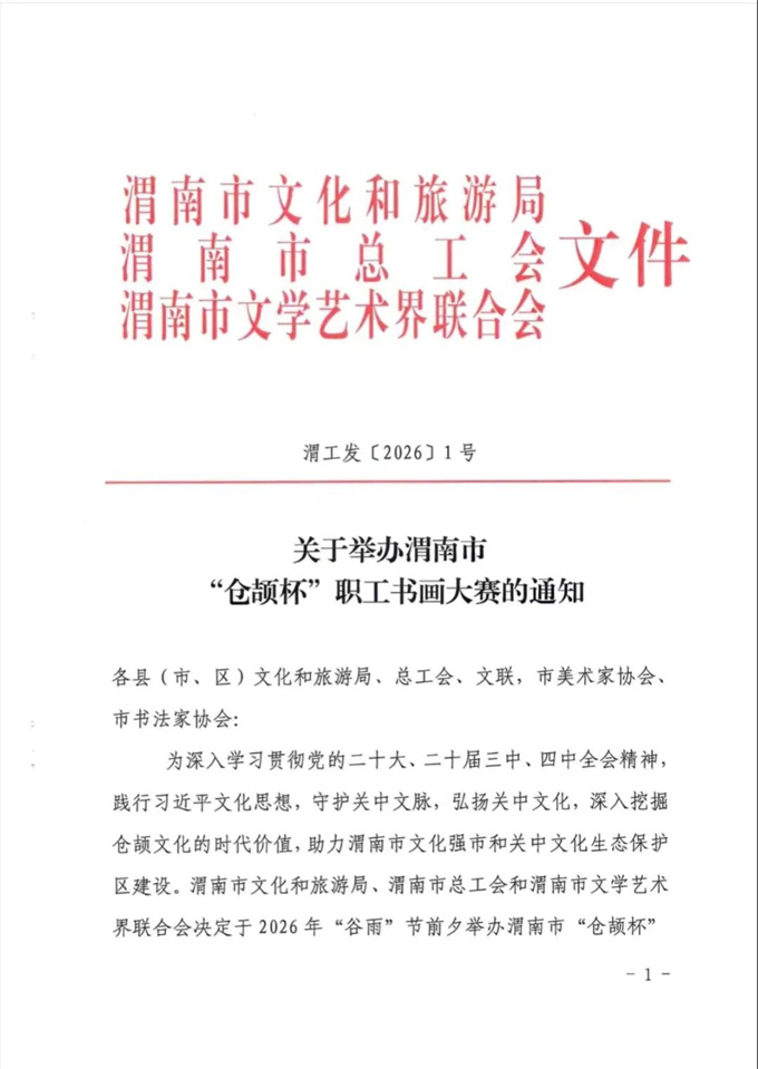 关于举办渭南市“仓颉杯”职工书画大赛的通知