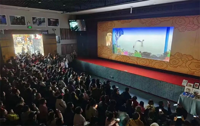 作为陕西省民间文艺家协会副主席、国家级非遗项目华县皮影戏制作技艺代表性传承人,薛宏权始终秉持“传承不是复制,是把魂接住,再种进新的土壤”的理念 。近期,他的团队在文旅与游戏领域的跨界动作引人注目。除了与深圳市烛猫工作室合作,探索皮影与游戏《千机阵》的产业融合外,薛宏权团队在春节期间推出的创新皮影剧目更是场场爆满。这些剧目彻底打破了传统“五人忙”的框架,引入了激光多媒体技术,将幕布扩展至5米以上,甚至能在舞台上实现“龙吐水”“吐火”等特效,让古老皮影秒变“科幻大片”。