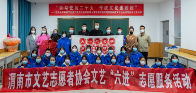 为深入贯彻落实习近平总书记关于文艺工作的重要论述和在中国文联十一大、中国作协十大开幕式上的重要讲话精神,积极落实陕西省文联文艺“六进”志愿服务活动会议精神,20221215日,渭南市文艺志愿者协会梁君莉主席一行四人走进渭南市三贤中学,开展“学习党的二十大,传统文化进校园”宣传教育活动。