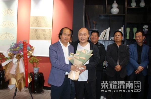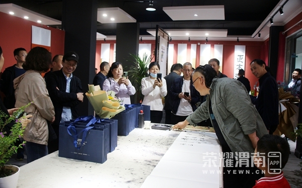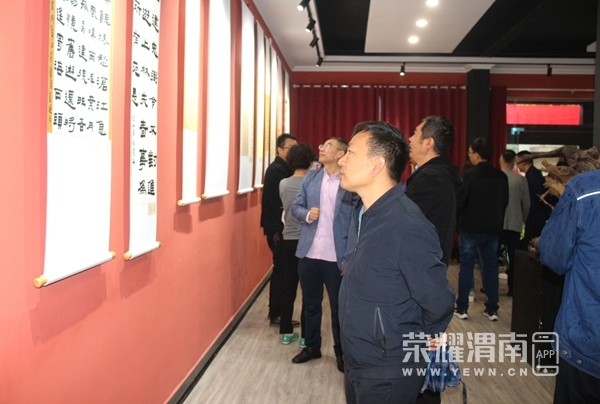 中国书法家协会第七届理事、陕西省作家书画院副院长、陕西省书法家协会第四届副主席兼秘书长史星文,陕西书学院副书记、省书法家协会楷书委员会主任高拥军,渭南市文联党组书记张宇,渭南市文联副主席葛长明,渭南市书法家协会主席薛小虎,中海地产渭南公司总经理王文彬,陕西省书法家协会草书委员会主任、渭南市书法家协会副主席罗小平,陕西省书法家协会篆刻委员会副主任、渭南市书法家协会副主席史建军,中国书法家协会会员、渭南高新区书法家协会主席王拥军,陕西省书法家协会楷书委员会副主任、渭南市书法家协会副主席兼秘书长陈龙,参展作者以及书画界朋友参加开幕式。开幕式由渭南广播电视台精品创作工作室主任、 渭南市朗诵协会会长惠卫东主持。