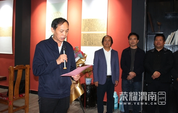 渭南市书法家协会副主席兼秘书长陈龙就本次展览筹备情况向与会嘉宾进行了汇报。同时表达了对市文联、市书协领导支持、师友教诲和社会各界关心的感激之情。