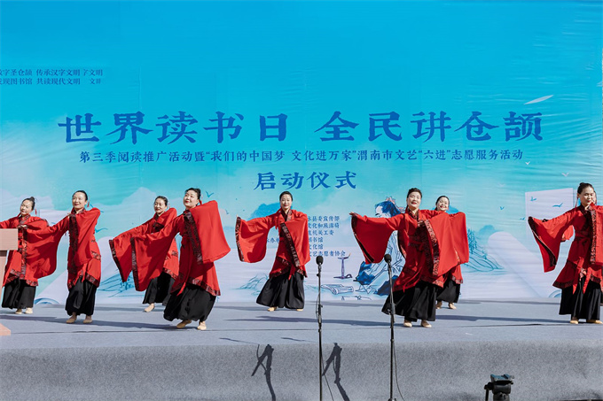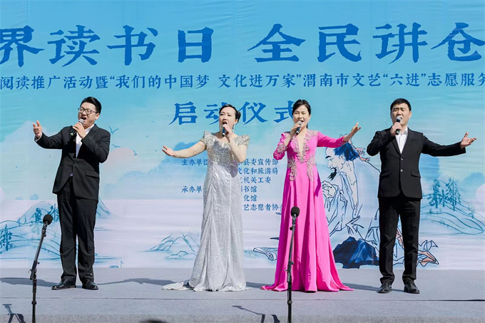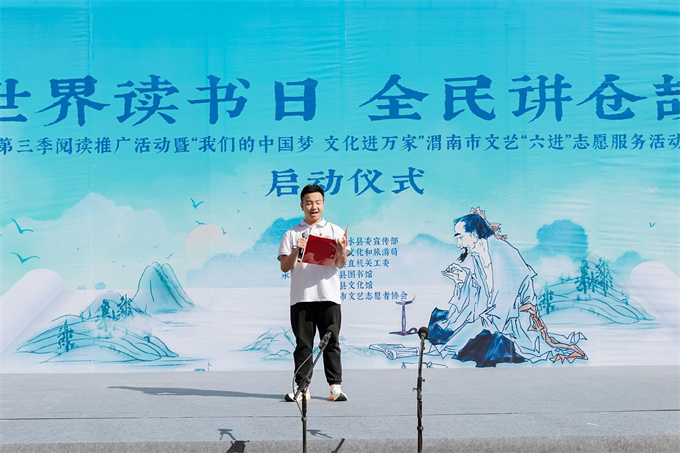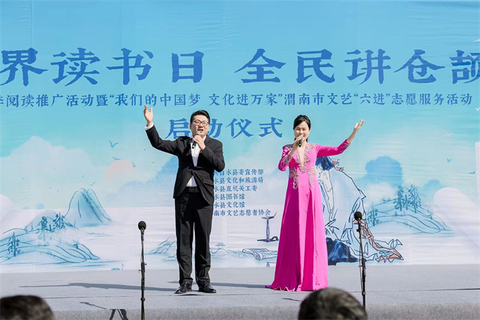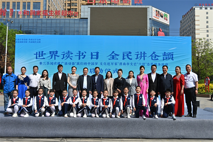 为深入贯彻落实党的二十大精神和习近平总书记关于公共文化建设重要论述精神,提高群众综合素质,倡导全民阅读,营造深厚的文化氛围,更好满足人民对美好生活的向往。4月23日,“世界读书日 全民讲仓颉”第三季阅读推广活动暨“我们的中国梦 文化进万家”渭南市文艺“六进”志愿服务活动启动仪式在白水县苹果广场举行。