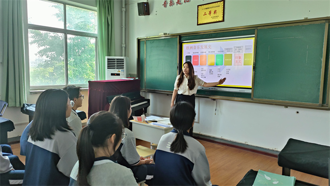 在“六一”国际儿童节来临之际,渭南市文联组织市文艺志愿者协会主席梁君莉,协会理事、陕西省优秀教学能手王山英,渭南市教学能手曹燕等文艺工作者走进临渭区杜桥中学和尚德中学开展了文艺“六进”活动,给同学们上了别开生面的公益课。