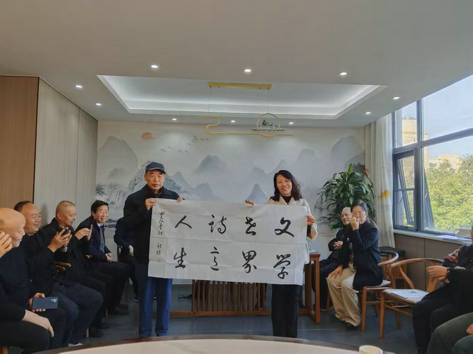 作为对徐喆主席的崇高敬意,书法家张秋鸽女士特意为徐喆主席准备了一幅精美的书法作品——文学世界,诗意人生。徐喆主席在接过书法作品后,对张秋鸽女士表示了衷心的感谢。