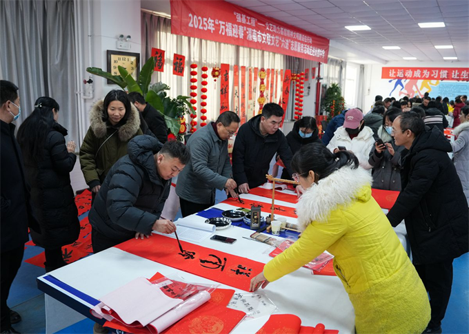 活动现场气氛热烈,书法家饱含热情,以笔为媒,在红纸上挥毫泼墨,为师生们义写春联。书法家们技艺精湛,或楷书端庄秀丽,或行书流畅飘逸,或草书奔放洒脱,一副副饱含祝福的春联在他们笔下诞生。“春风送暖蛇欢舞,瑞气盈门人乐安”“灵蛇献瑞千家乐,彩凤呈祥万户欢”等等春联,既展现了对新春的美好期盼,也传递着传统文化的独特魅力。