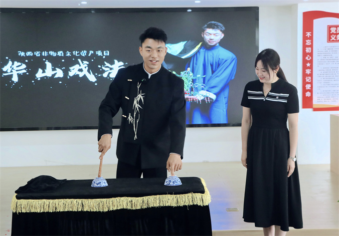 活动接近尾声时,渭南民间艺术家协会的贾博涛带来了华山戏法表演。只见他手中道具不断变幻,奇妙的魔术效果引得现场观众阵阵惊叹。孩子们兴奋地围在舞台前,眼睛一眨不眨地盯着表演,生怕错过任何一个精彩瞬间;老人们也被这神奇的戏法所吸引,脸上洋溢着开心的笑容,现场气氛被推向了高潮。