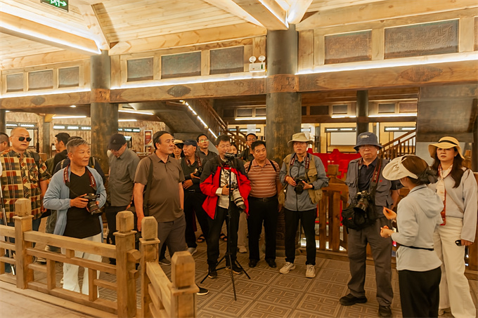 作为周王朝发祥地,岐山周原承载着《诗经》“周原膴膴”的文明记忆,烙印着青铜器铭文里“宅兹中国”的文明源头,这里的一砖一瓦,皆是历史的注脚。参与采风的各位摄影家们更是聚焦景区三大核心区域(周城、周公庙、凤凰山),通过光影构图,将青铜纹饰的玄妙、夯土城墙的斑驳、周服衣袂的飘逸转化为极具张力的视觉语言,以“文物+艺术+流量”模式激活传统文化传播。