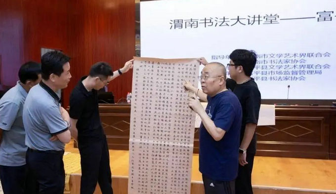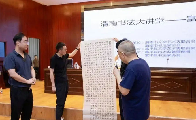 为贯彻“全市书协一盘棋”理念,以书法艺术赋能文艺发展,助力提升书法创作水平,7月6日,渭南市书协“书法大讲堂”于富平县市场监管局会议室顺利举办。富平县老中青书法爱好者踊跃参与,线上同步平台亦吸引超5000余人受益,共赴书法艺术探索之旅,为文艺发展注入书法活力 。